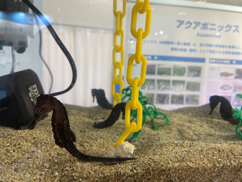 今回、展示されているタツノオトシゴ。フワフワとしたかわいらしい動きに、皆さん足を止められ、水槽を熱心に観察されています。