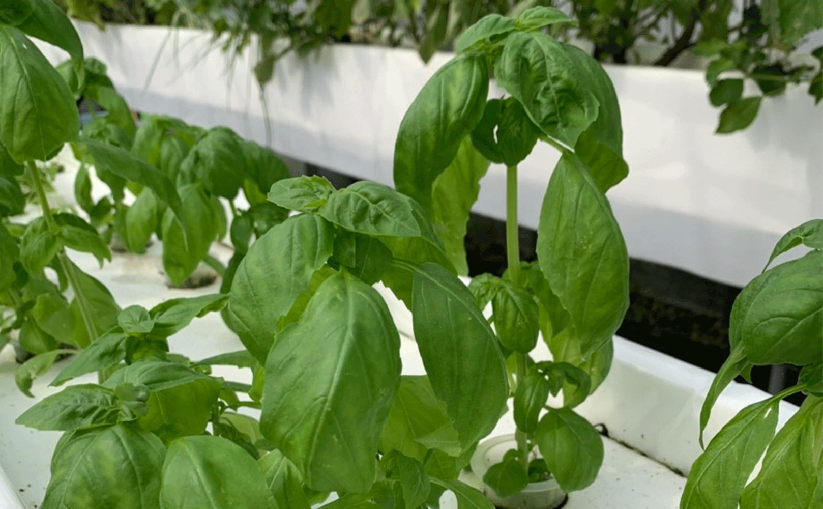 土を使わず、水と液体肥料で植物を栽培する方法です。植物の根を肥料が入った水(培養液)に浸し、必要な養分を常に根から吸収させます。水切れになる心配がなく、棚の上に設置するため大雨による浸水のリスクも減少します。